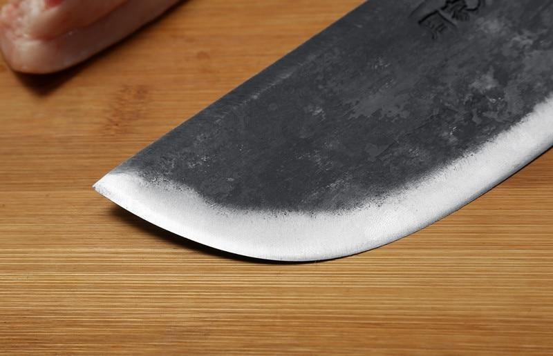 A lâmina grande e resistente é feita de aço Su e aço de carbono que passaram por vários procedimentos de forjamento para tornar a lâmina extremamente afiada, forte e durável.