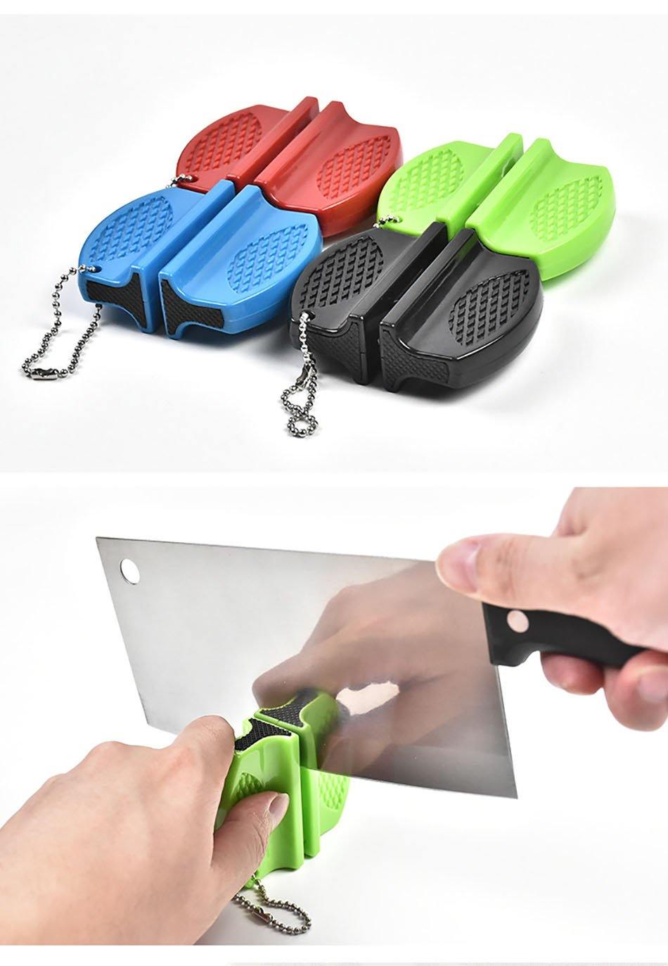 O Mini Afiador de Facas é ideal para você levar aonde quiser, pequeno, portátil, leve, e com uma alça para pendurar na sua chave, bolso ou onde preferir, dá pra levar pra qualquer lugar e afia suas facas precisamente como um afiador maior, lhe dá uma lâmina com afiação como se fosse nova. Ideal para facas de cozinha, como faca de frutas, pães, faca de corte, faca do chef, não é recomendado o uso com tesouras, facas serrilhadas e facas de cerâmica. Feito especialmente com 2 estágios para afiação, o estágio Cerâmica para afiar facas mais finas; e o estágio de Aço Tungstênio para afiar facas mais grossas.